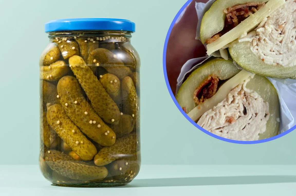 You then hallow out each bit of pickle and stuff it with traditional sandwich fillings, like lettuce, turkey, bacon, provolone, etc.