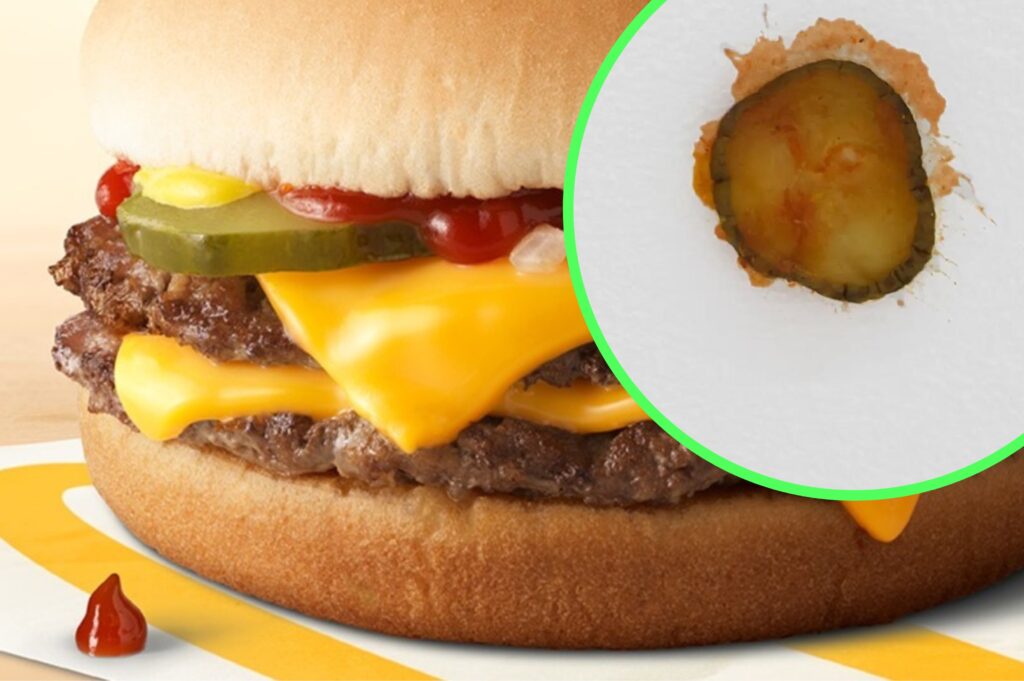 The pickle is reportedly only secured to the ceiling thanks to the sauces that were already in the burger.