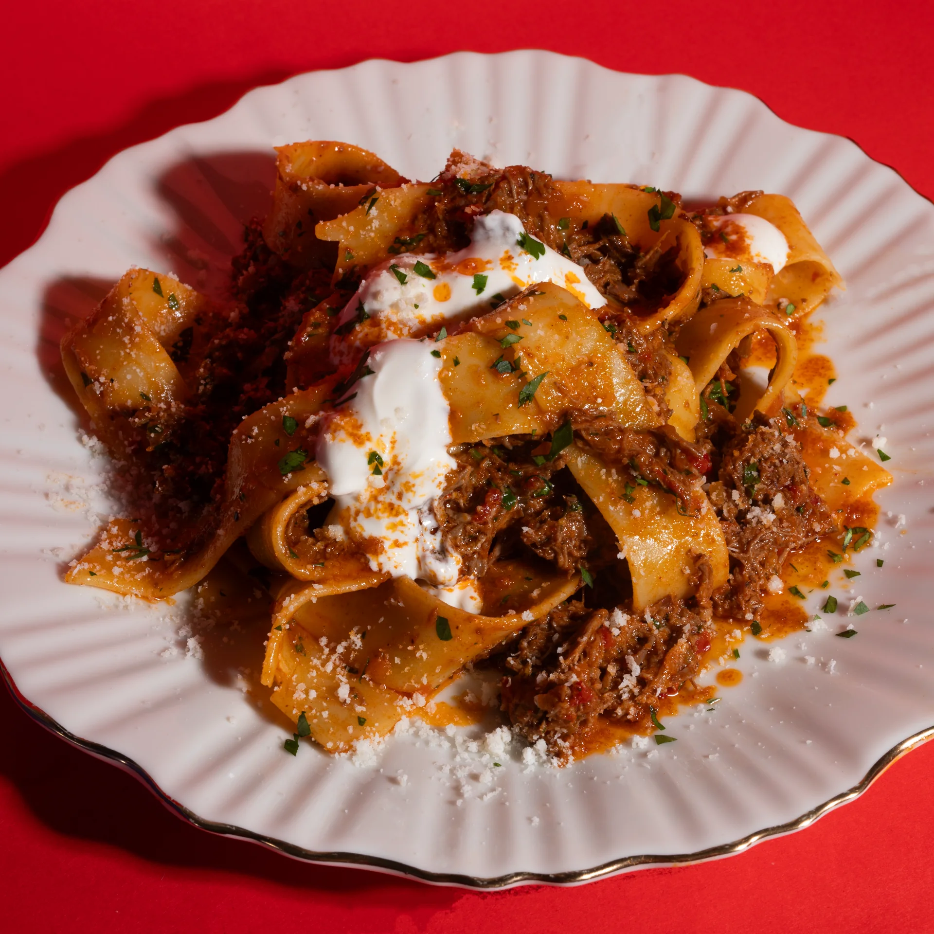 It's not just a beef stew - it's a culinary icon! Citizens of Vienna and Budapest basically live off the stuff, as any trip to a coffee house would tell you. The smell of the beef stew, thick with paprika, fogging up the windows. Usually it's just served with a few kaiser rolls, but we're taking it a little West (geographically) and making a less soupy, more ragu-esque dish that goes perfectly with pasta.