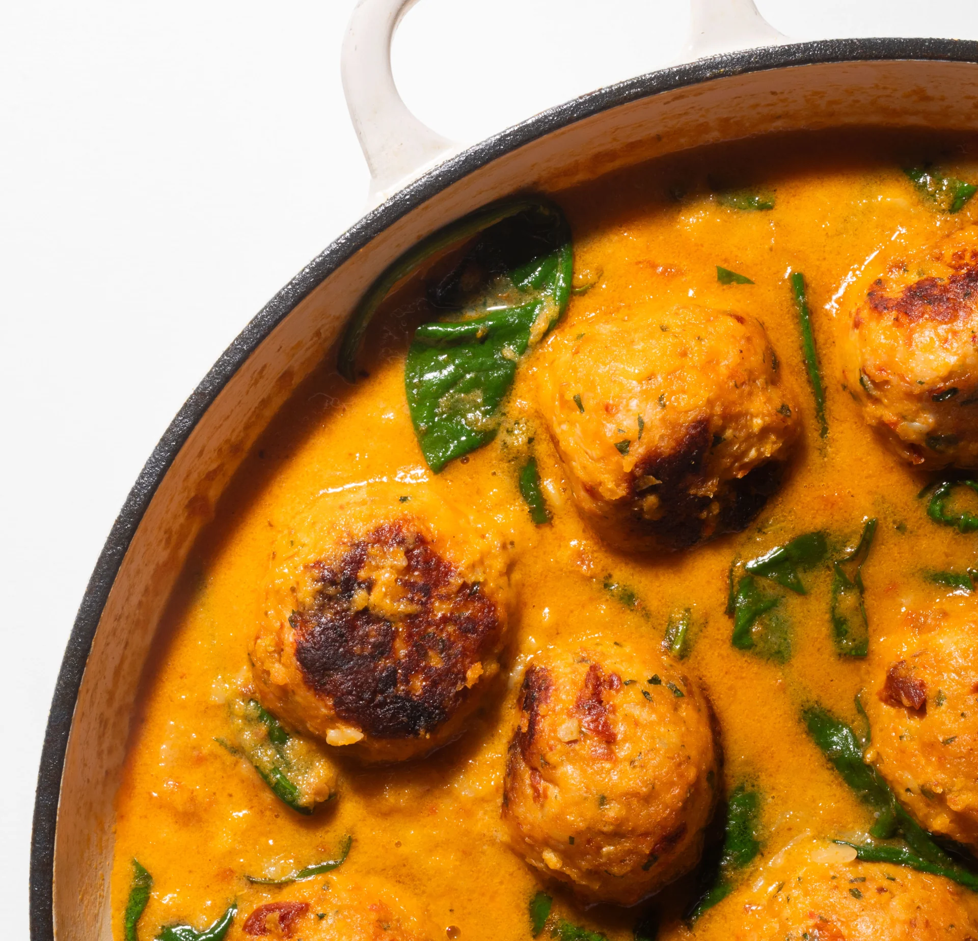 Italian wedding soup is meatballs cooked in broth with greens and tiny pasta. Believe it or not, the name doesn't come from weddings, but it's known as 'minestra maritata', translating to wedded soup referring to the marriage of meats and vegetables. We've taken the structure of this soup, and fused it with 'marry me chicken', which is chicken breast cooked with sun-dried tomatoes, cream, parmesan, and spinach.