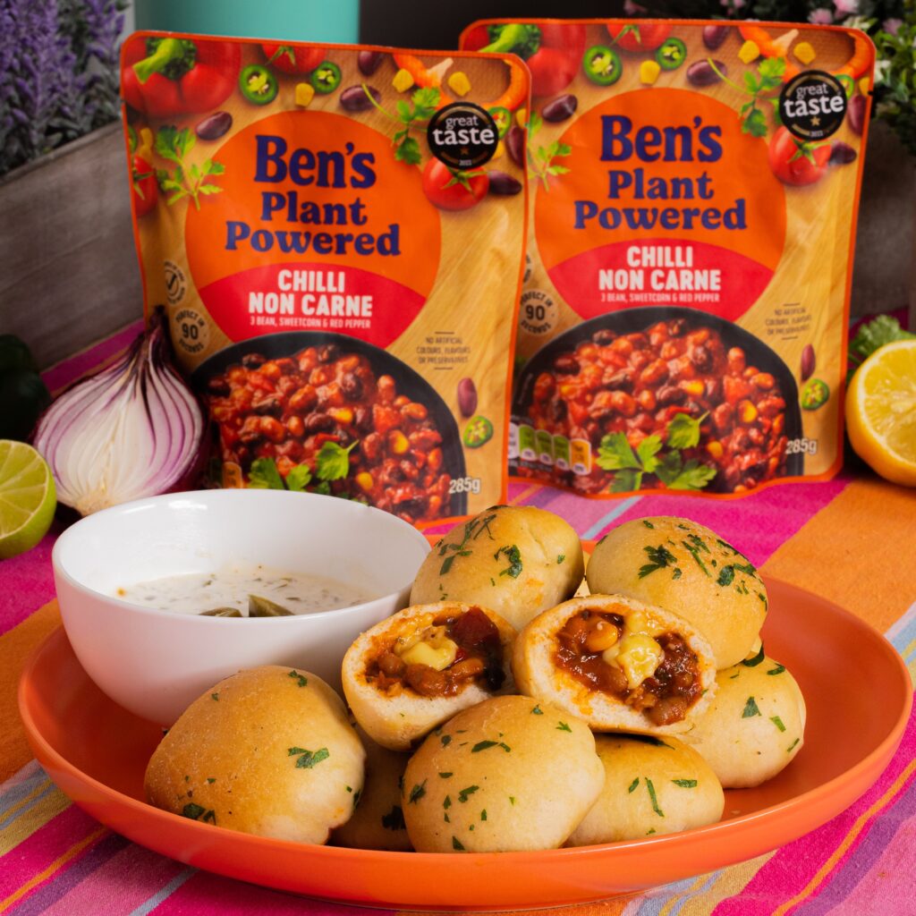Fluffy, cheesy stuffed dough balls with Ben’s smokey Chilli Non Carne – an absolute delight and way too good to resist.